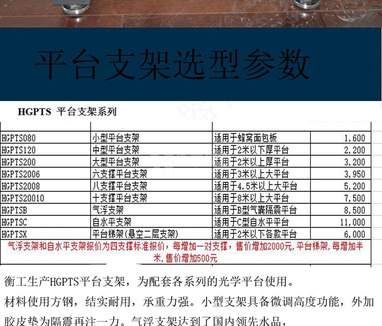 衡工光學(xué)平臺(tái)支架有多種形式,大、小型支撐,六、八、十支撐可購買,可定制。