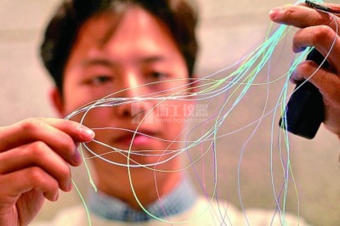 復(fù)旦大學(xué)科研人員展示用于編織的發(fā)光纖維。新華社發(fā)