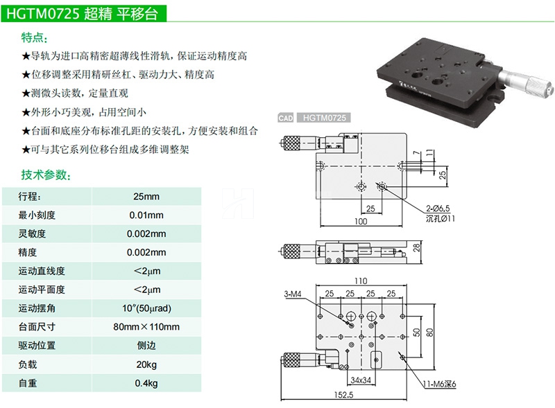 衡工高精度平移臺(tái)手動(dòng)光學(xué)實(shí)驗(yàn)微調(diào)位移滑臺(tái)廠家直銷規(guī)格齊全HGTM0725
